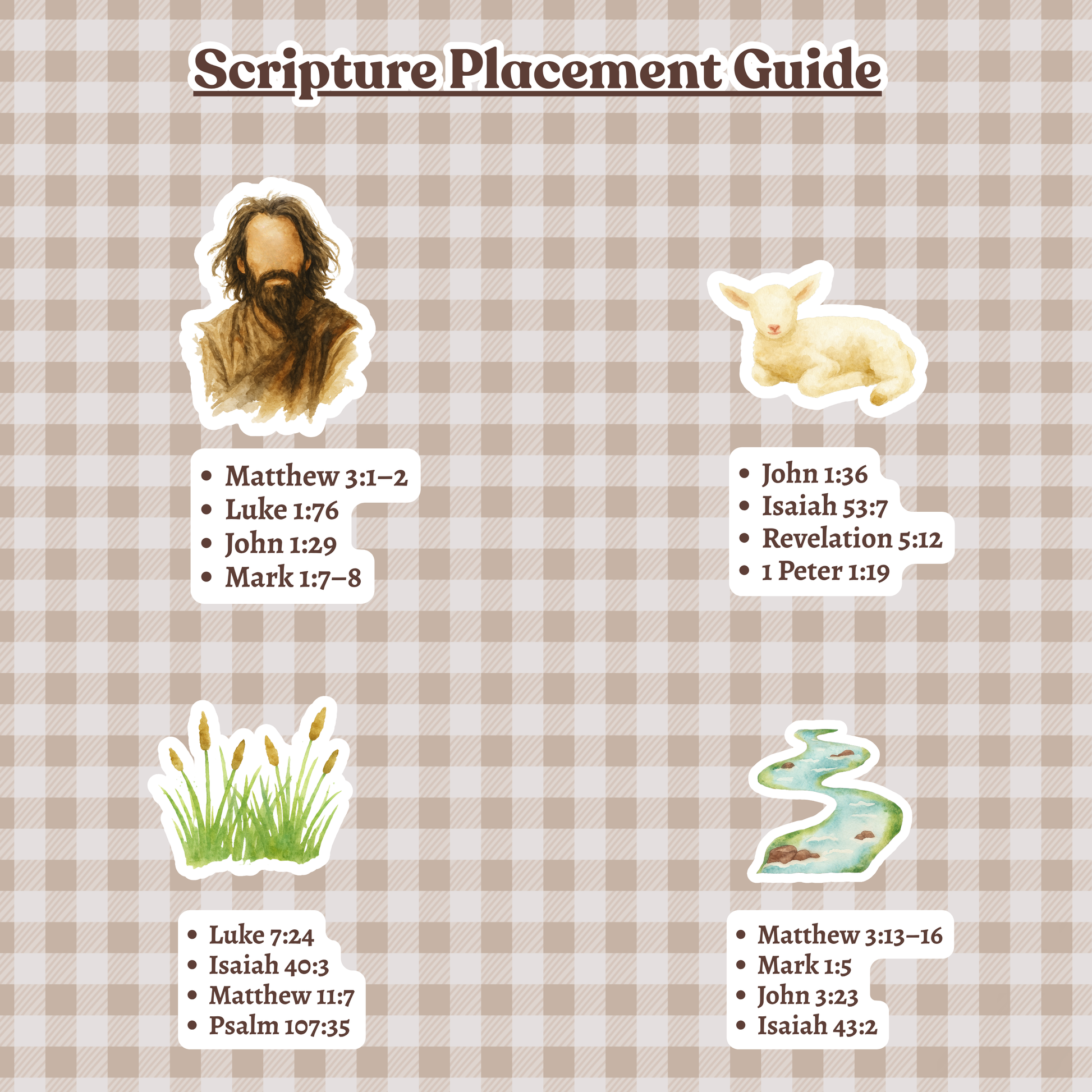 Step into the wilderness where faith began to echo. This watercolor sticker set honors John the Baptist, the prophet who prepared hearts for the coming of Christ. Each design reflects repentance, renewal, and the promise of redemption through the Lamb of God.